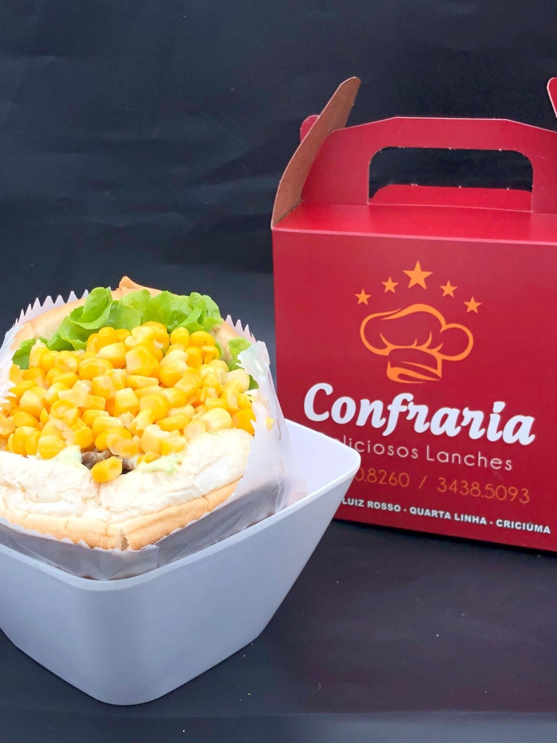 Pão, ovo, hambúrguer, queijo, presunto, tomate, alface, ervilha, milho e maionese. Se deseja o seu xis prensado, favor informar na opção de adicionais logo abaixo.