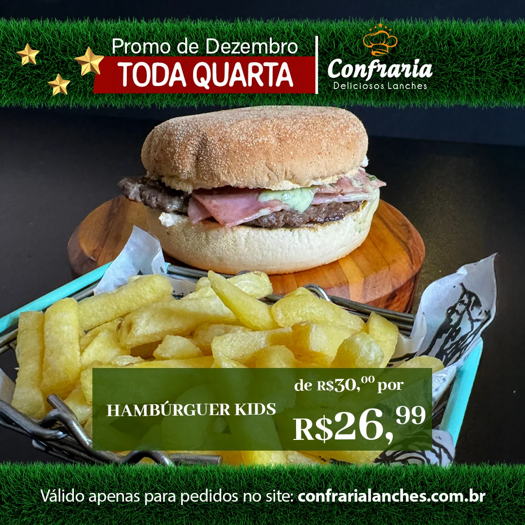 Pão, maionese, 1 hambúrguer, queijo, presunto. Acompanha batatas fritas.